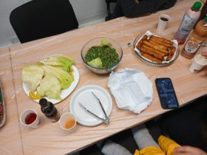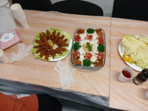Depuis quelques temps, le groupe FLE a su créer une belle dynamique, faite d’entraide, d’échanges et de convivialité. Pour célébrer la fin de l’année, les apprenants se sont retrouvés autour d’un repas chaleureux et festif. Chacun a partagé des plats issus de son pays d’origine, transformant ce moment en un véritable voyage culinaire et culturel. Ce temps de partage a renforcé les liens du groupe et illustré la richesse de la diversité qui le compose.